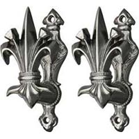 Medieval Fleur De Lis Wall Hangers for sale offer a unique and beautiful way to display swords, daggers and western replicas. Each display measures 3 3/8th inches. The set of two can be positioned any distance apart. The displays are expandable which makes it possible to display various sized swords and collectibles. The Medieval Fleur De Lis Wall Hangers are meticulously cast of metal and have an antiqued finish. These displays also include the necessary hardware to hang them on the wall. Buy these medieval style Fleur De Lis Wall Hangers to display your swords and collectibles for only $19.99.